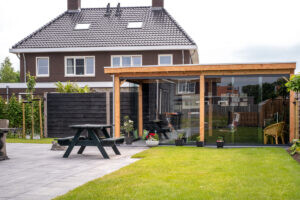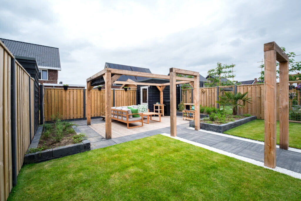 Houten pergola bij terras