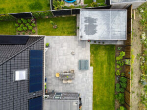Tuin van bovenaf met terras